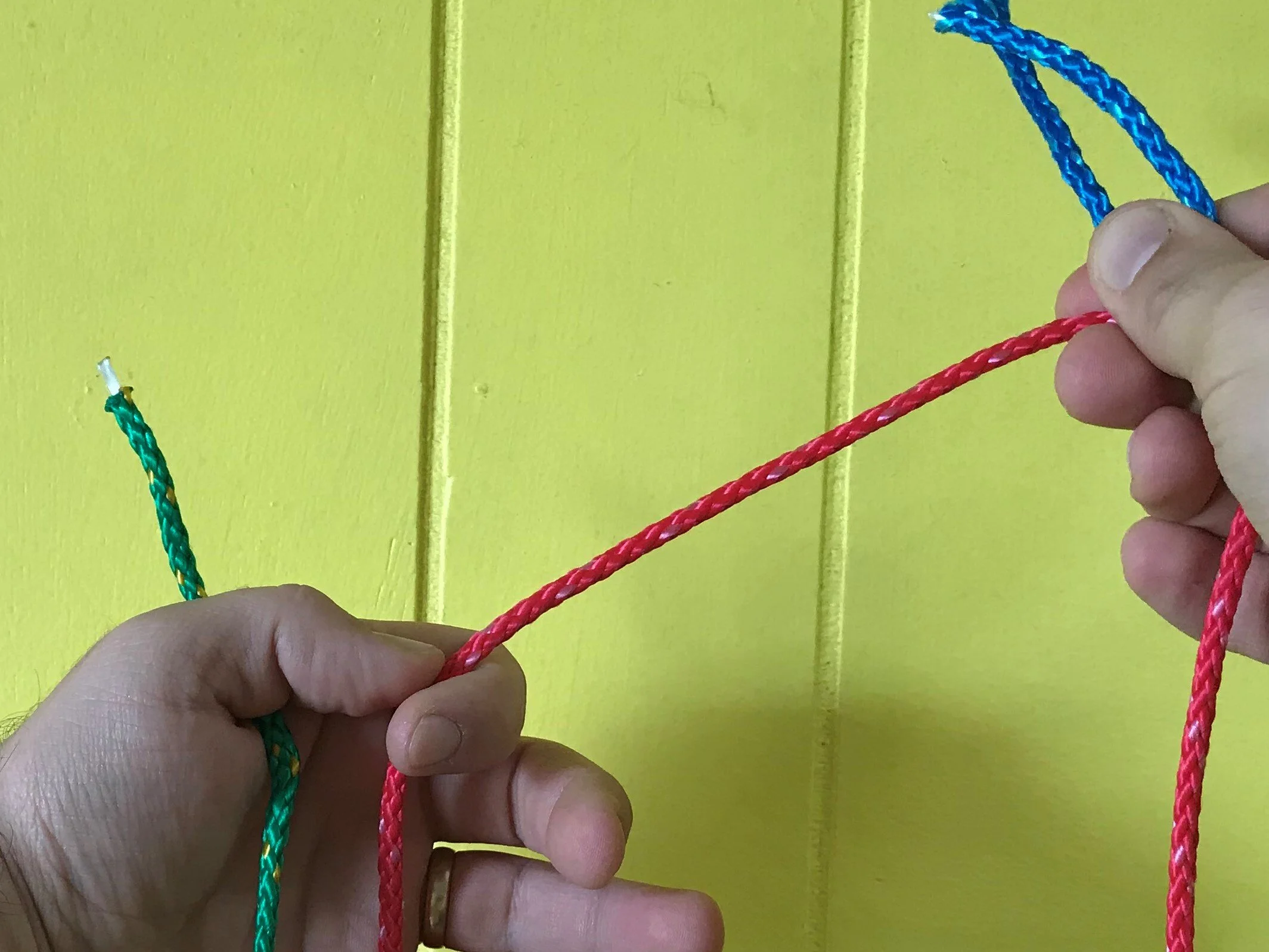 IN THE FOLLOWING INSTRUCTIONS THE BLUE ROPE REPRESENTS THE SMALL LENGTH ROPE.